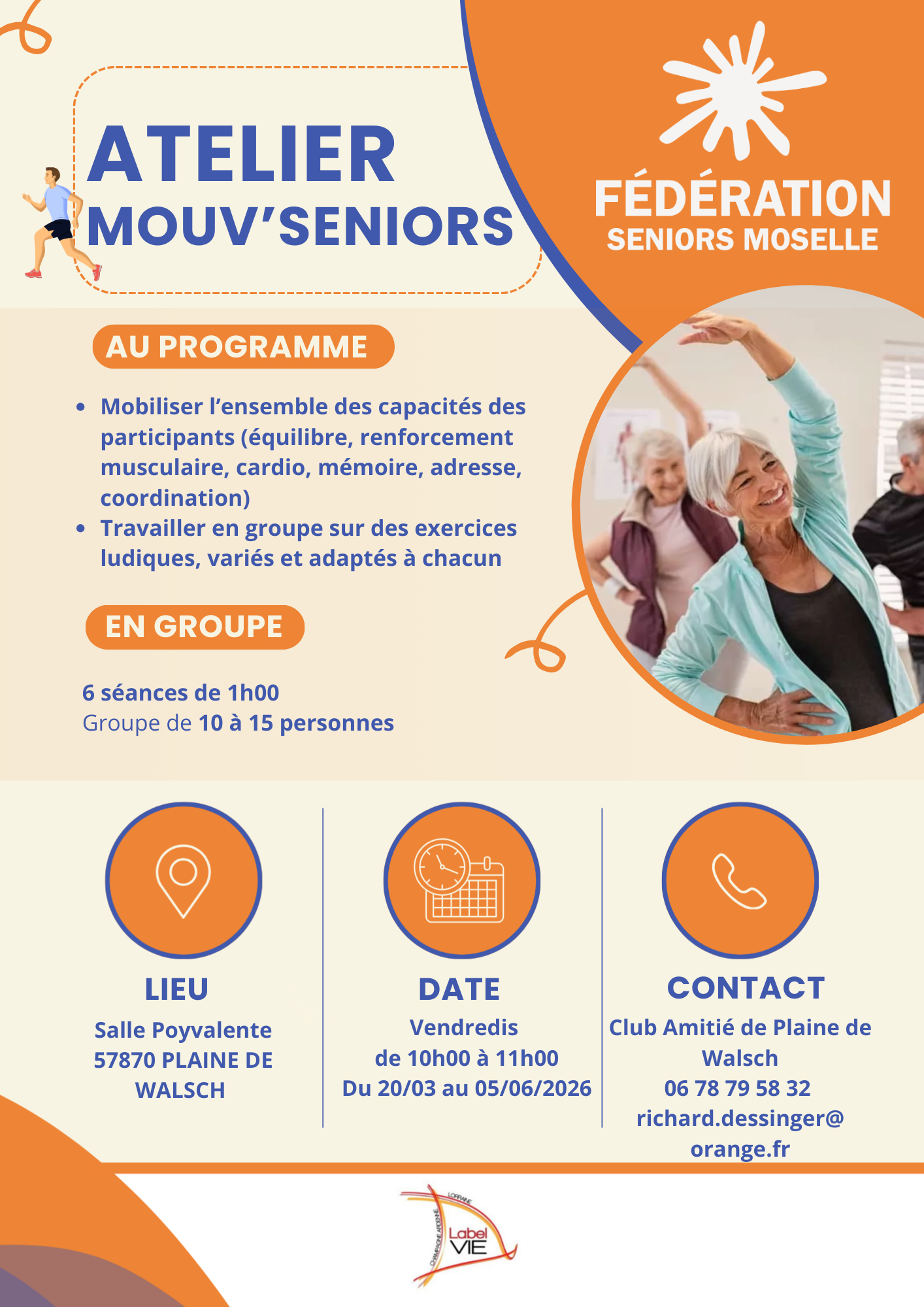 La Fédération Seniors Moselle propose des projets d’activités destinées à faciliter les rencontres, à réaffermir la confiance en soi, à s’instruire et à améliorer sa santé.Elle organise ateliers, cours de sport adaptés et événements en faveur des seniors de Moselle et soutient les associations de seniors dans tout le département de Moselle.