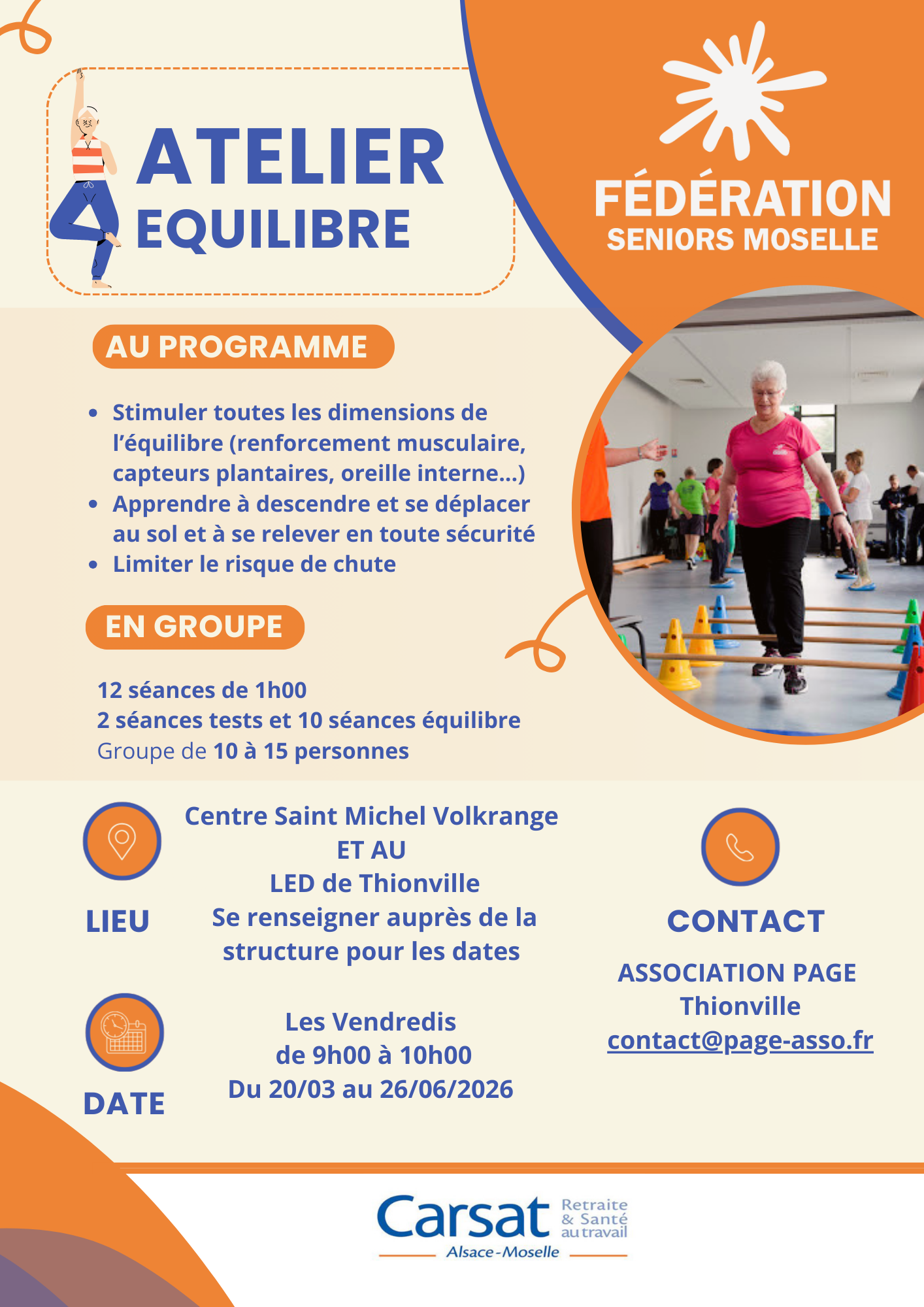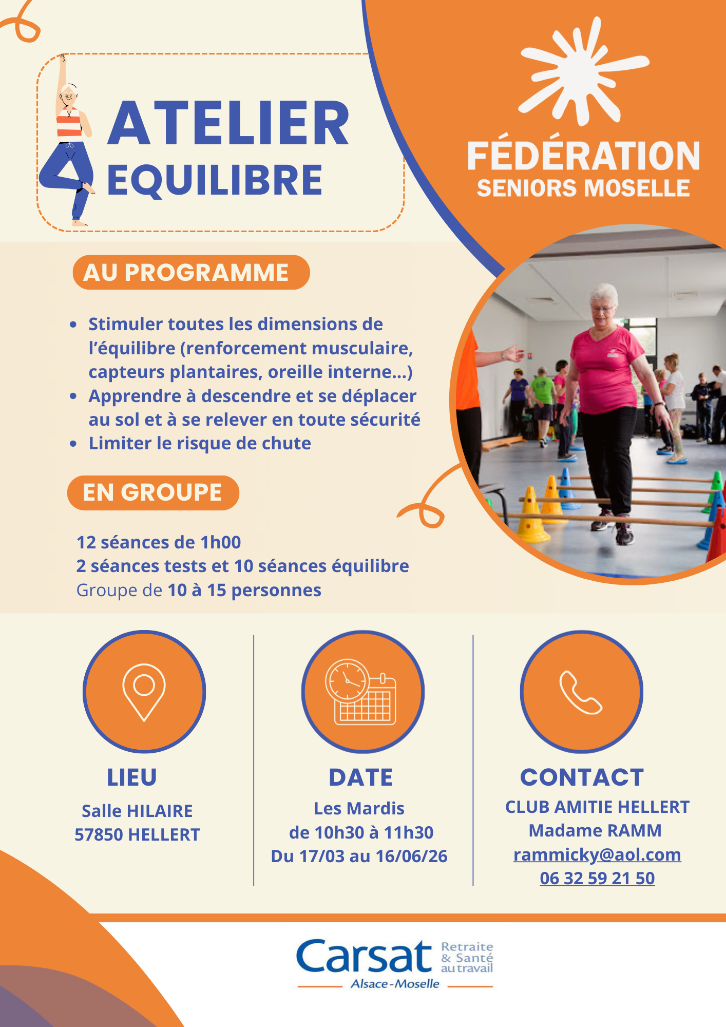 Atelier Equilibre à Plesnois. Dés le mois de Mars. Contactez la Mairie de Plesnois pour vous inscrire.