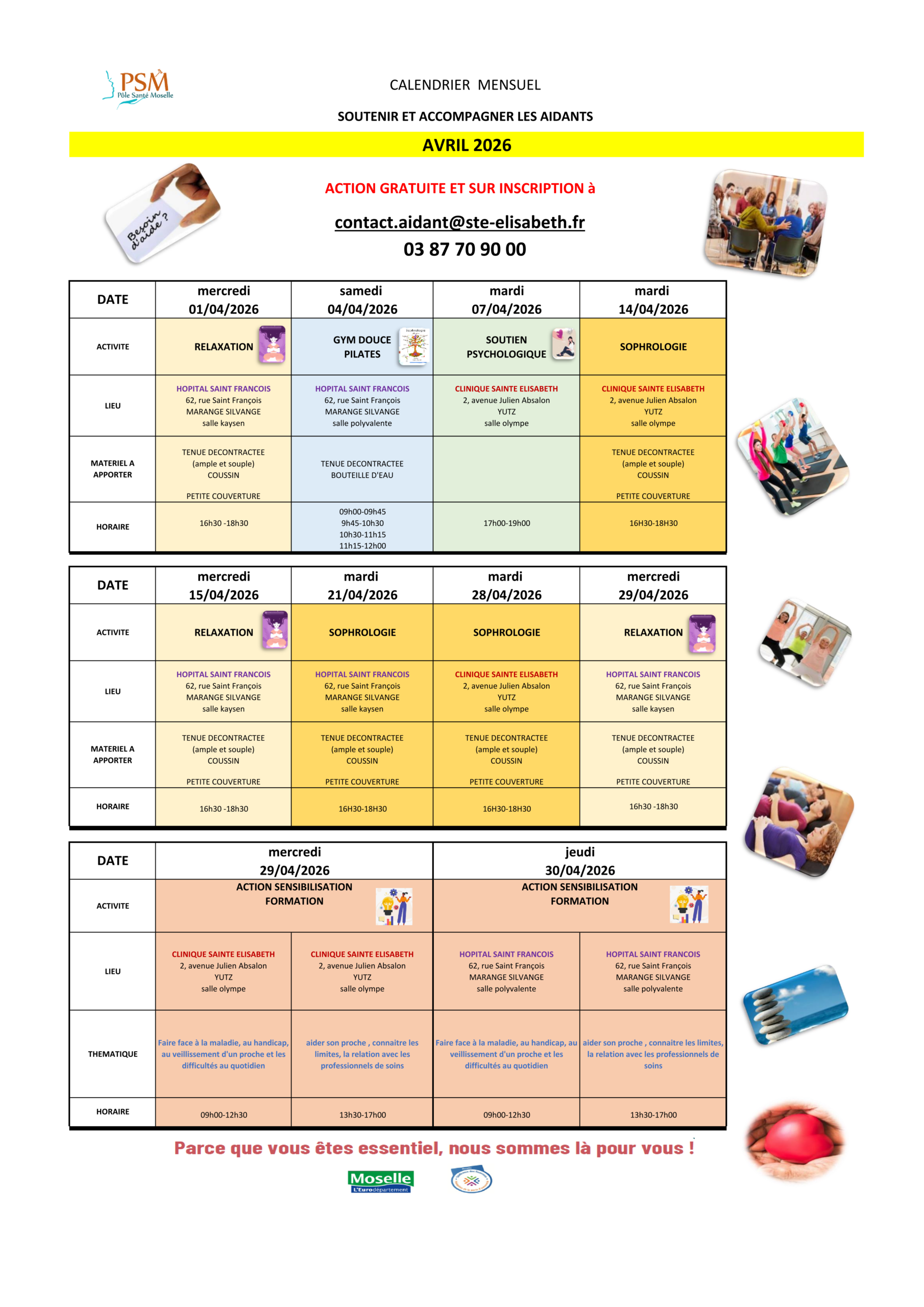 Retrouvez la programmation de nos ateliers Equilibre, APA et Mémoire ci contre.