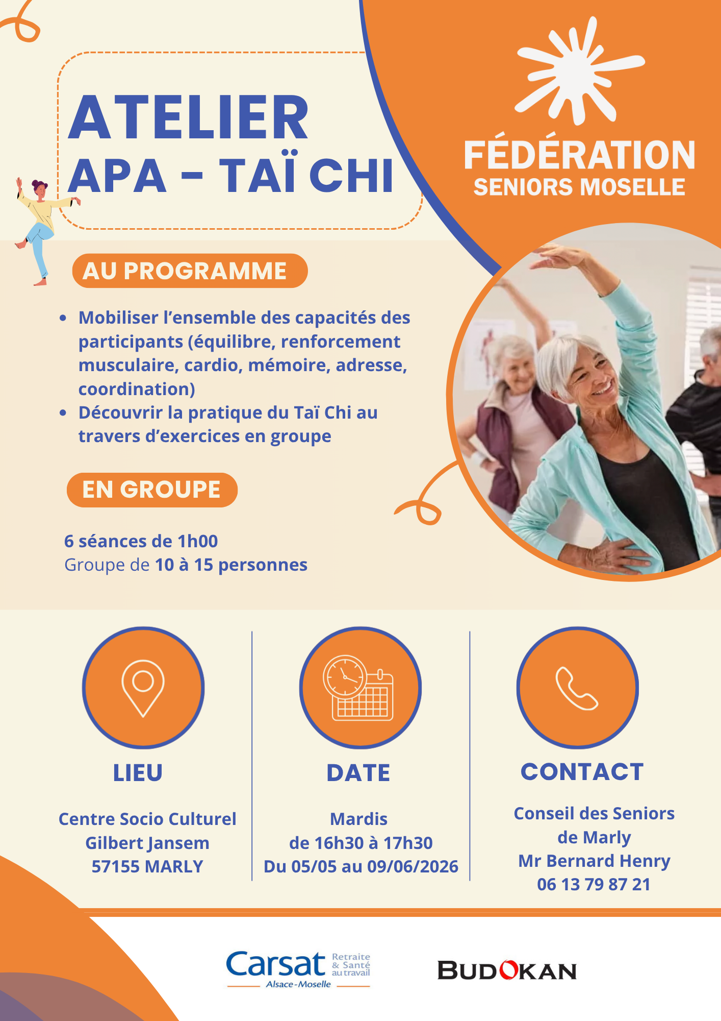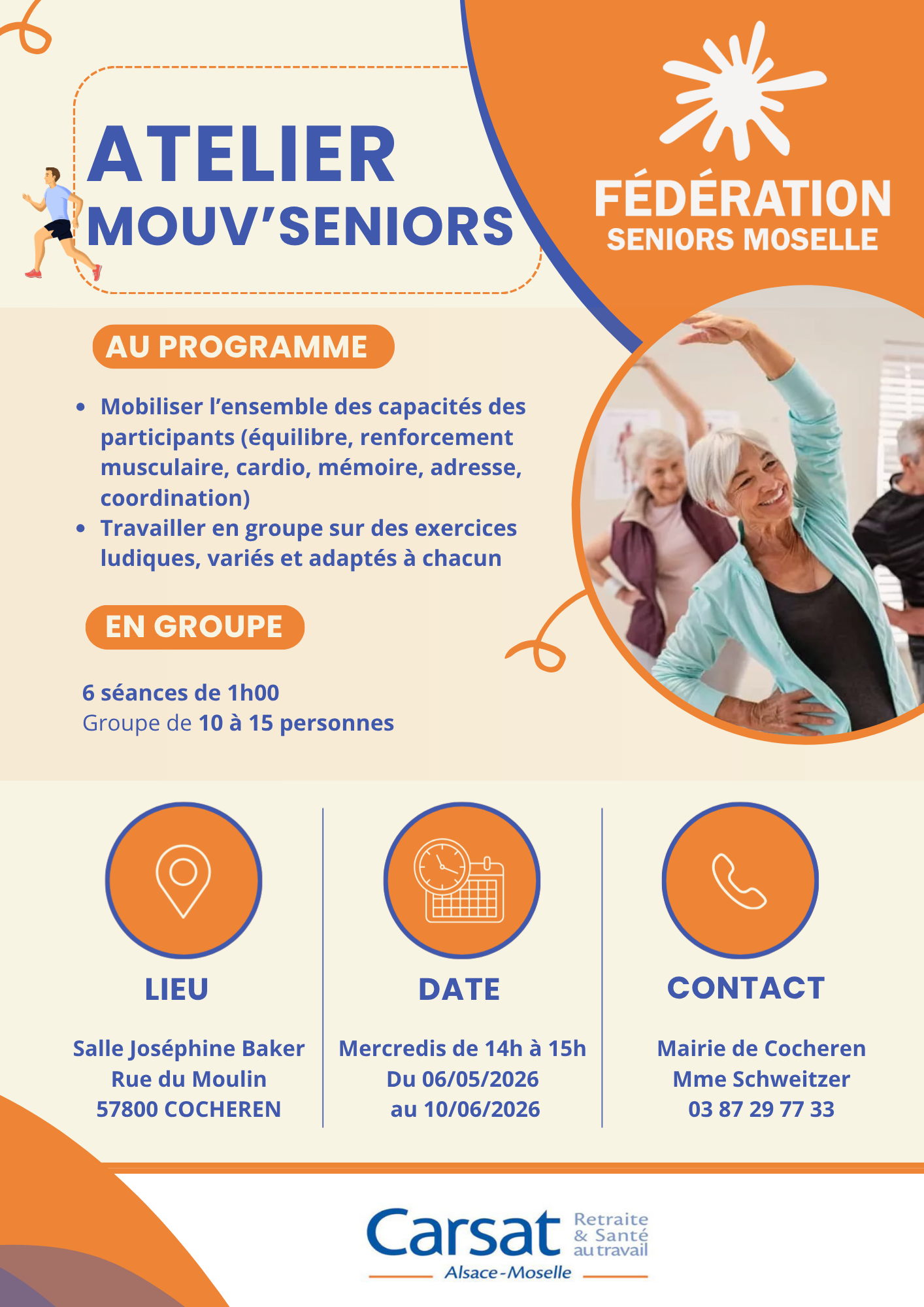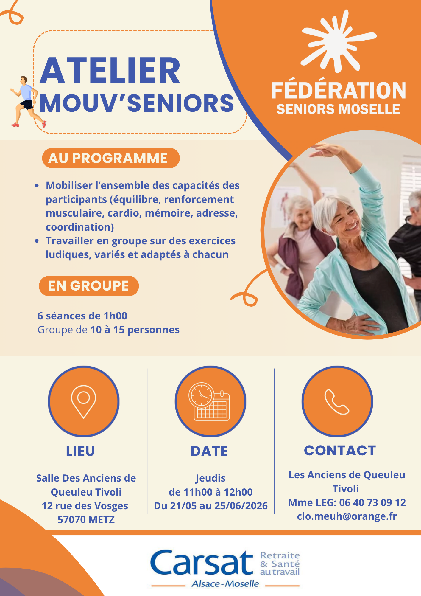 Pour plus d’informations : sport@federationseniorsmoselle.fr ou par téléphone au 06 22 38 65 97 ou au 03 87 65 49 00